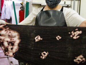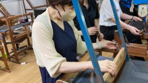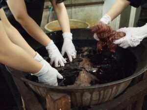 今回のツアーでは、機織りグループと染めグループの2組に分かれて