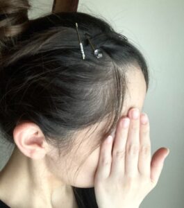 ゴールドカラーのストレートピンに装飾したものを2本セットでプレゼント!