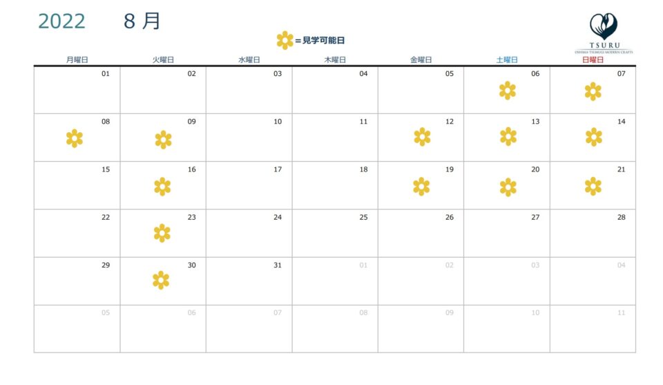 8月出展情報&機織り見学カレンダー