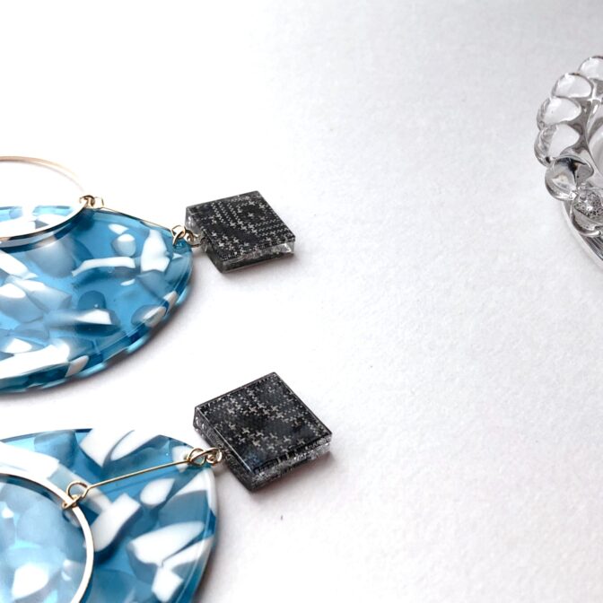 レジンを施して大人かわいいピアスやイヤリングなどのアクセサリー、カバン、