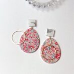 大島紬をレジンで封入し、卵型のマーブルプラパーツを装飾しました。