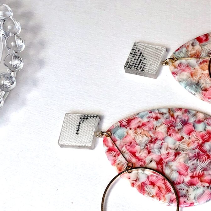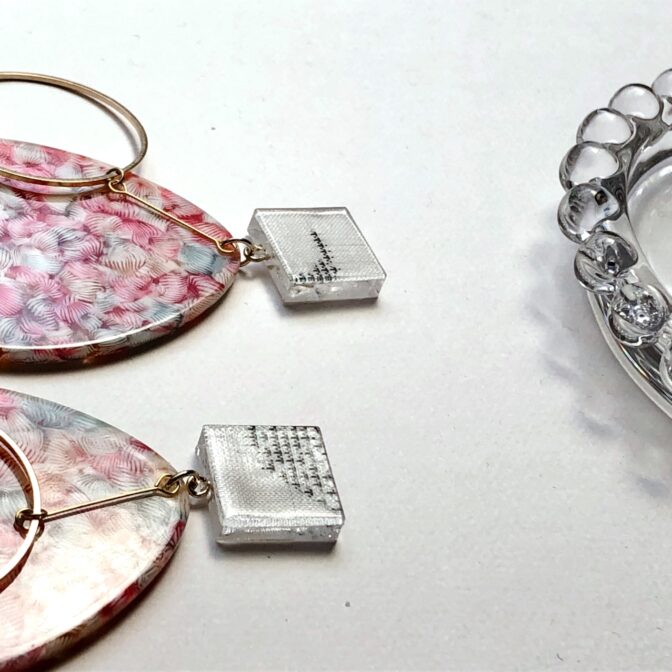 レジンを施して大人かわいいピアスやイヤリングなどのアクセサリー、カバン、