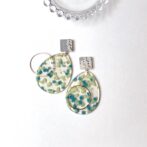 大島紬をレジンで封入し、卵型のマーブルプラパーツを装飾しました。