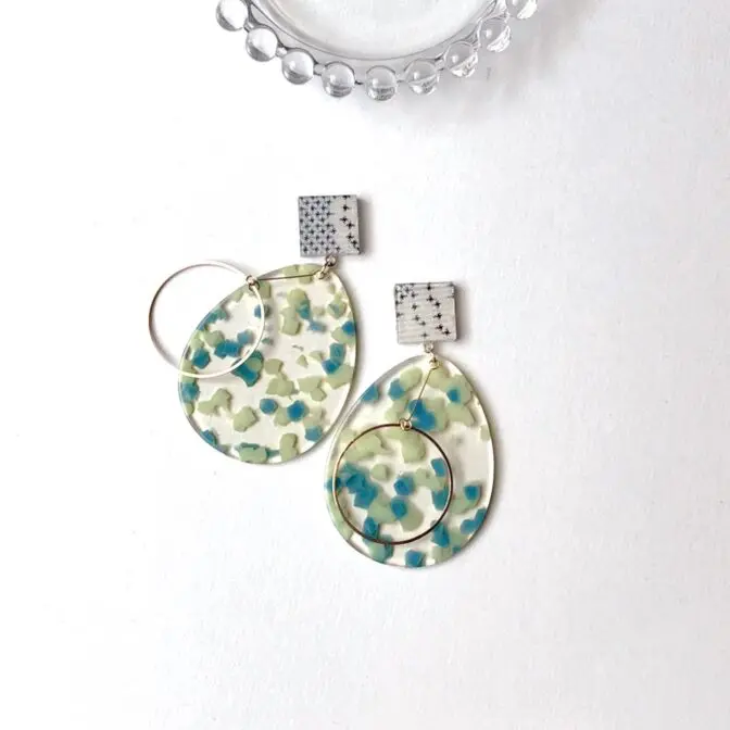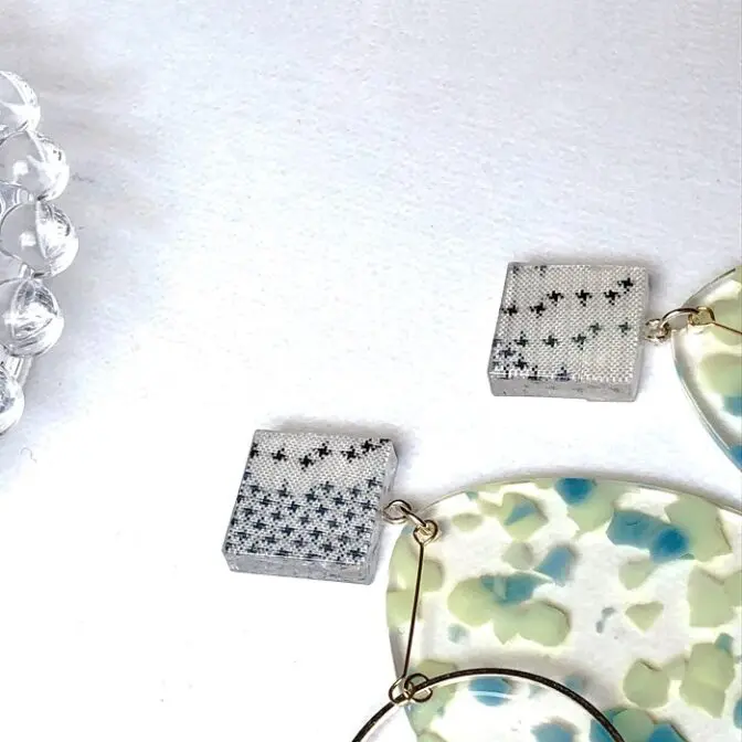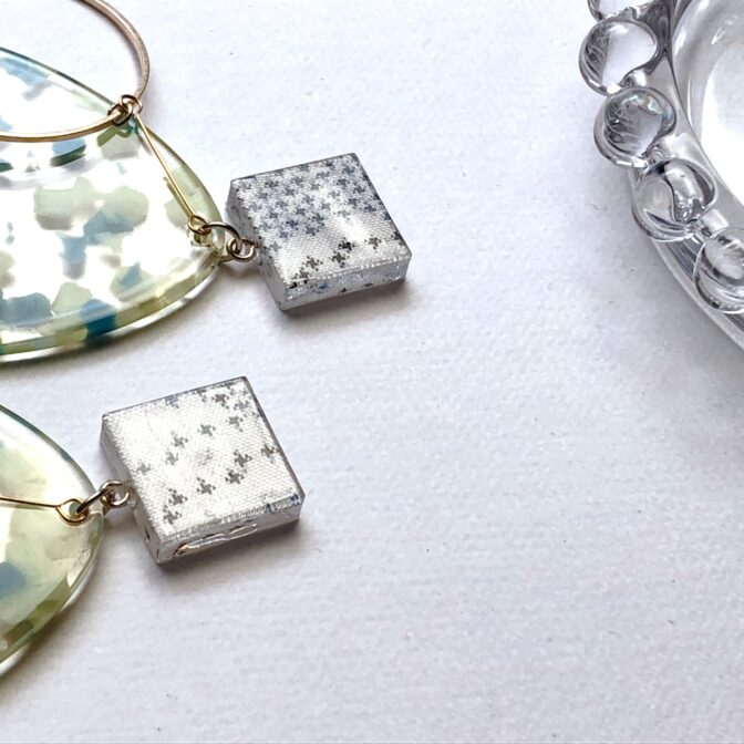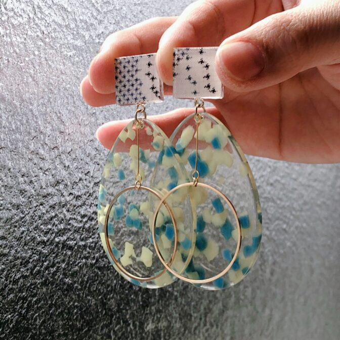レジンを施して大人かわいいピアスやイヤリングなどのアクセサリー、カバン、