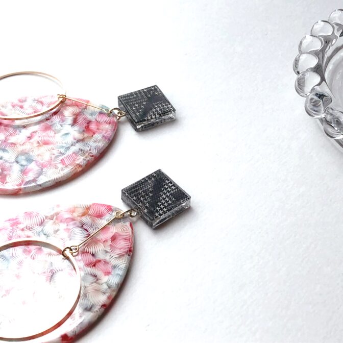 レジンを施して大人かわいいピアスやイヤリングなどのアクセサリー、カバン、